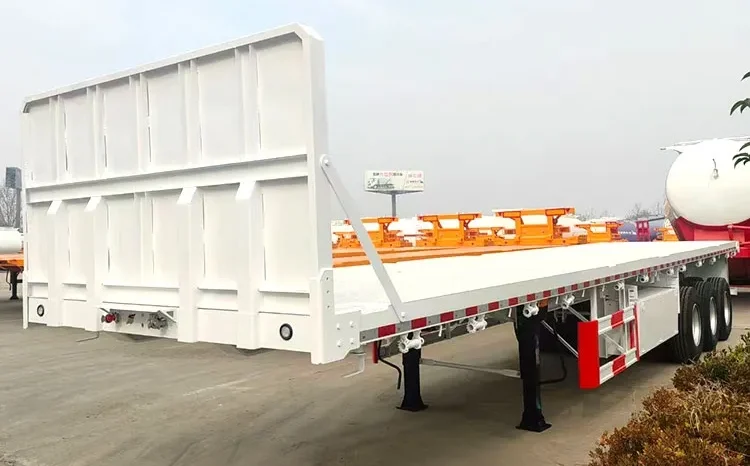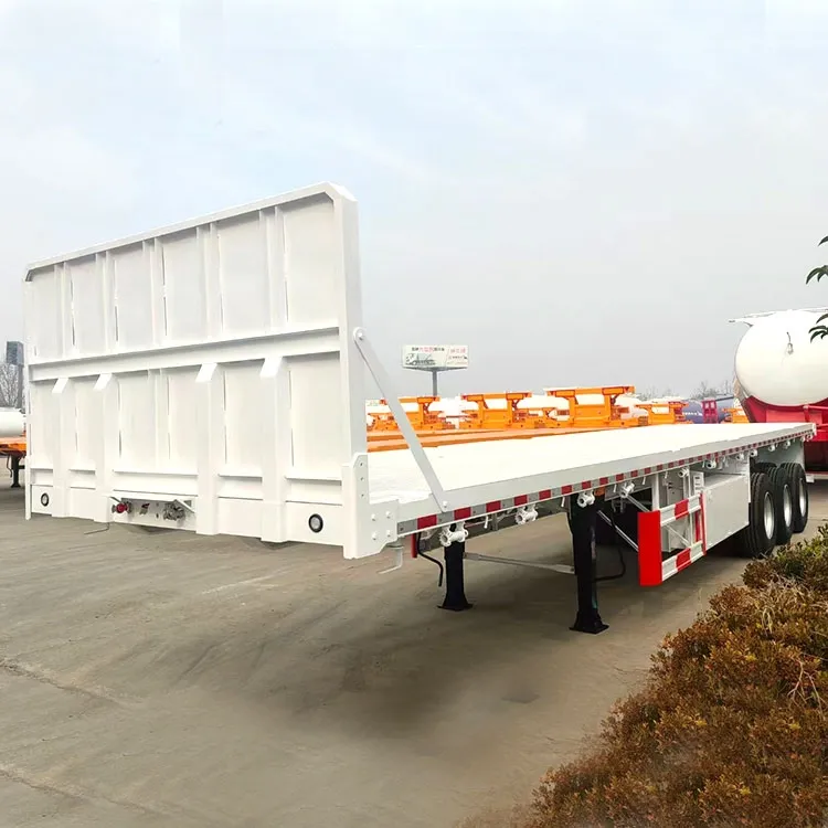 Flatbed Trailer with Front Wall is an upgraded version of the standard flatbed semi-trailer, enhanced explicitly with a front-mounted mudguard wall for improved functionality. It combines protective features with structural durability and is designed as a versatile transport solution for Zambia's market.